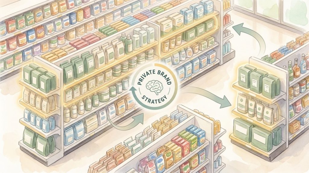 コンビニチェーン各社は、独自のプライベートブランド(PB)商品を展開しており、これらの商品は一般的なメーカー品よりも高い利益率を持っています。そのため、PB商品はゴールデンゾーンをはじめとした目立つ位置に優先的に配置されます。
