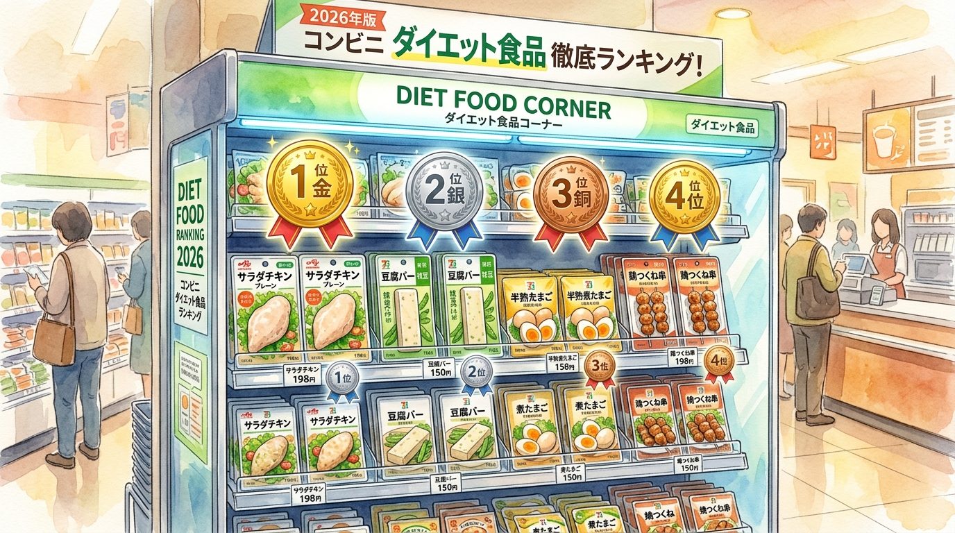 2026年時点で、ダイエッターが最も選んでいるコンビニ食品をタンパク質量、脂質、コスパのバランスで順位付けしました。