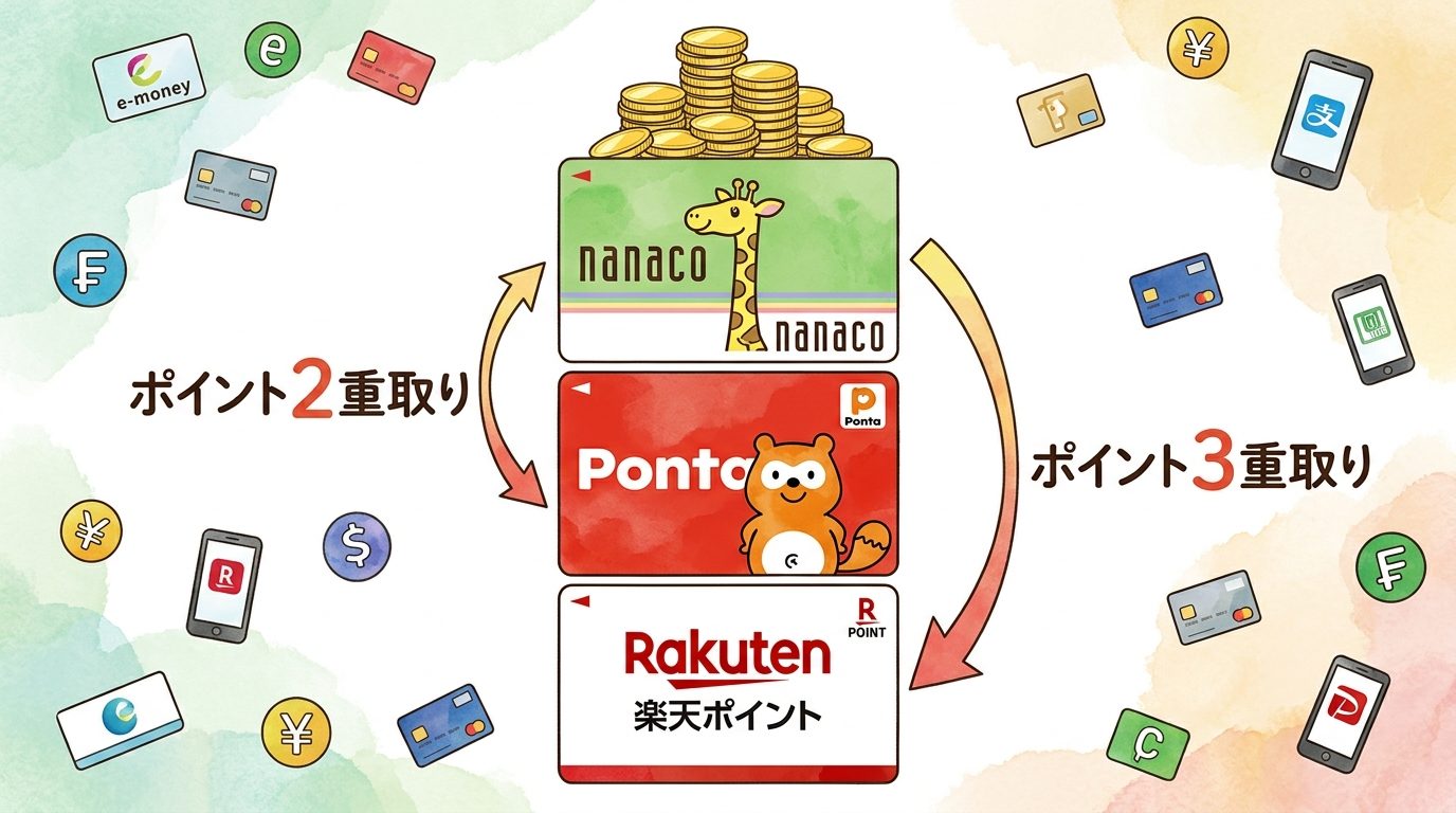 コンビニでポイントを最大限に貯めるには、複数のポイントプログラムを組み合わせる「二重取り」「三重取り」が効果的です。