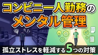 その他 コンビニ一人勤務のメンタル管理|孤立ストレスを軽減する5つの対策 コンビニの一人勤務では心理的負担が複数人勤務の1.5~2倍。孤立感、判断力低下、緊急対応時の不安などの原因と、実践的な5つのメンタル管理法を厚生労働省の事例を交えて解説します。 2026.03.22 その他裏話・実態・体験談豆知識